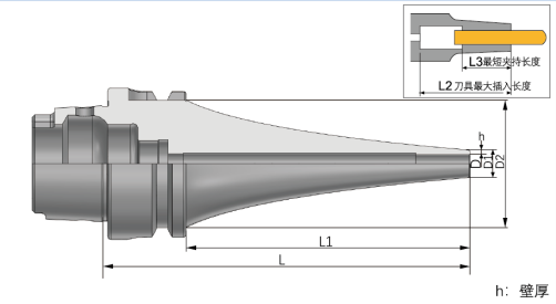 ■适合5轴加工,前端细长根部粗壮,实现高刚性