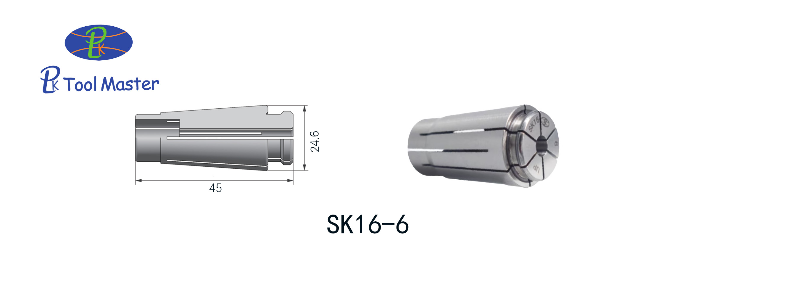 核心性能 1.SK 筒夹是专为高速、高精度数控加工设计的弹簧筒夹 2.采用 4°锥面设计的高速款 3.表面粗糙度达 Ra0.4 4.重复装夹精度≤0.005 mm(AA 级,4D 长度处) |