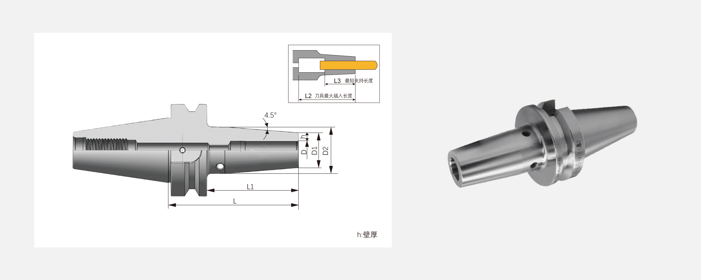 tips ■搭配热缩机使用 ■注意清洁与保养及时涂抹防锈油,妥善存放 ■使用时确认机床主轴接口与刀柄相匹配 |