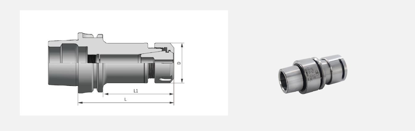 核心性能 1.适配ER全系列弹性筒夹,夹持范围广(φ0.5-φ32mm) 2.整体精磨工艺,锥面(1:10)高精度配合 3.本体精度≤0.002mm,重复装夹精度高 4.通过螺母锁紧ER筒夹,实现快速装夹与拆卸 5.结构紧凑,抗振性良好 6.动平衡G2.5 30000rpm |