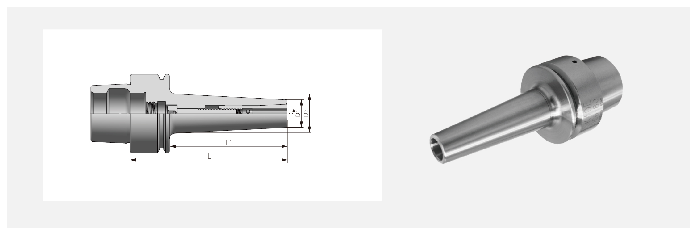 | 规格 Spec. | 夹持范围D [mm] | D1 [mm] | D2 [mm] | 筒夹 [collet] | L [mm] | L1 [mm] | |